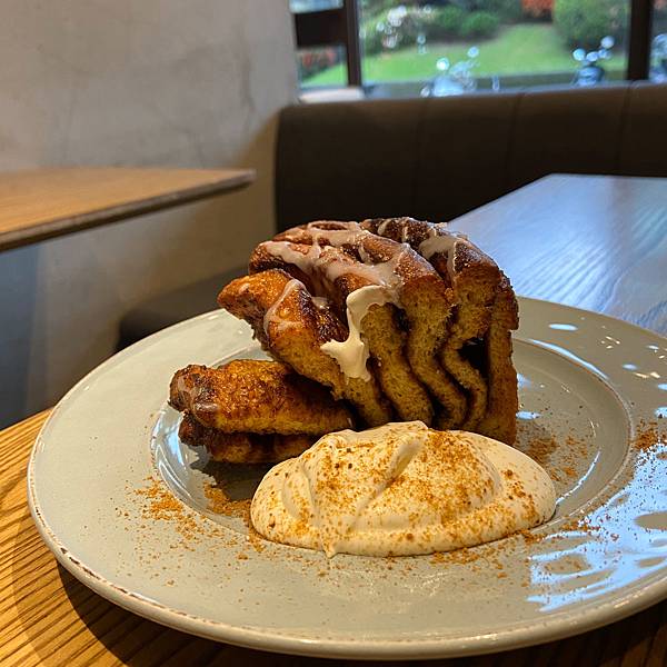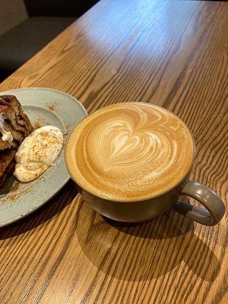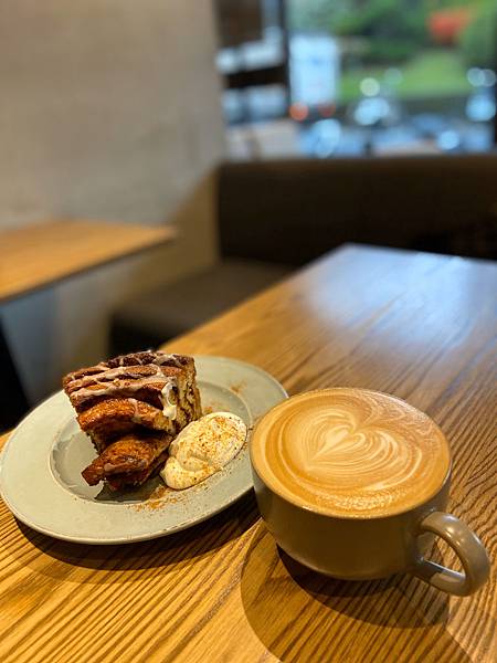 上桌的肉桂捲、咖啡拿鐵拉花,為週末的早晨帶來美感。醒來的第一口是現烤回溫的肉桂捲,比想像中的稍甜,溼潤的口感像是法國吐司,顆粒感的糖霜給予一絲剩下的期待,或許一早就給自己這樣的味道,好像有點過。